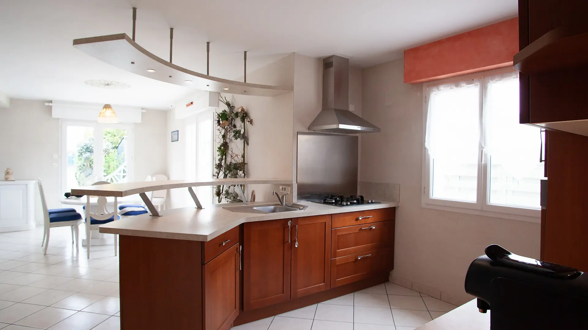 Maison sur 2 niveaux avec 4 chambres dont une de plain pied, 2 salles de bain, une terrasse aménagée avec cuisine d'été orientée Sud.