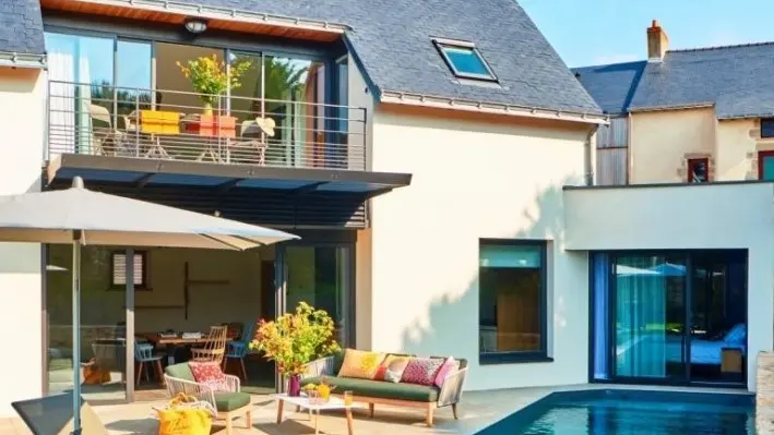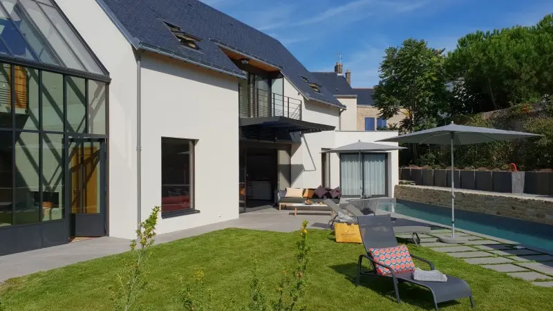 En Bretagne Sud, au cœur du village de Batz-sur-Mer, ENTRE SEL ET SABLE est un meublé de tourisme 5*, disposant d'un jardin aménagé avec une piscine chauffée 13X3. Les plus de 290 m² carrés de la villa "A la recherche de l'absolu" peut accueillir 10 à 14 personnes.
