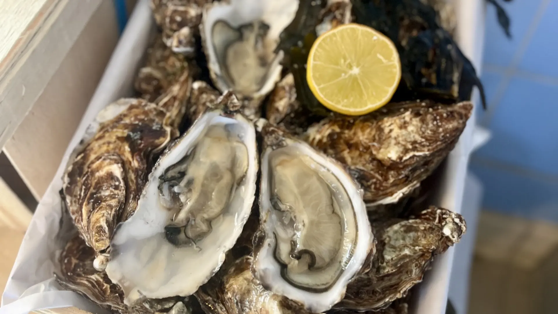 En été, nous proposons dégustation huîtres, crevettes, bulots vin blanc et moules frites les midis