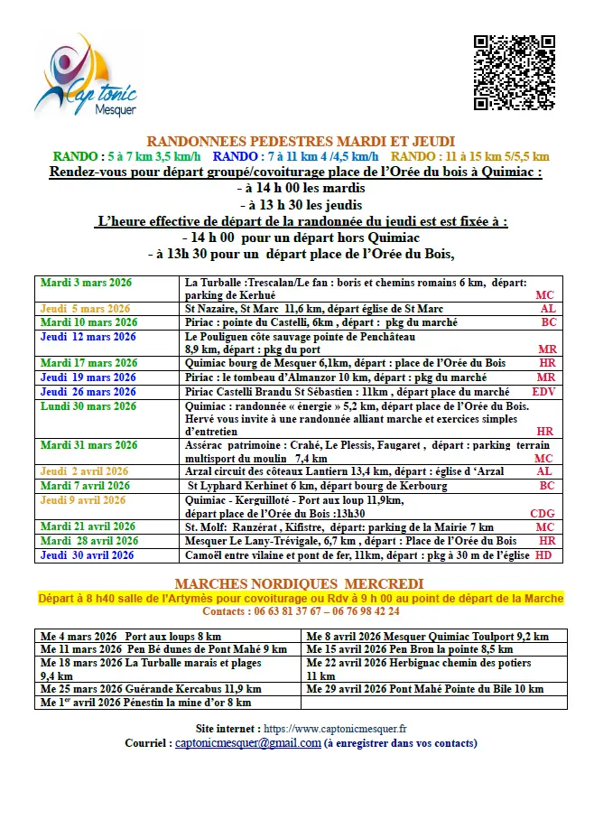 Les Randonneurs Mesquérais vous proposent des sorties de marche nordique sur la Presqu'île :