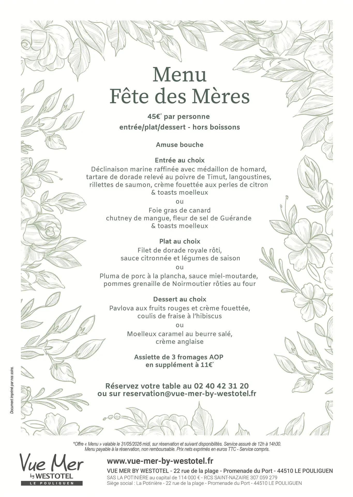 Pour la Fête des Mères, offrez lui un moment d’exception autour d’un menu spécialement imaginé pour célébrer toutes les mamans. Une cuisine raffinée, des produits de saison et une touche de gourmandise pour faire de ce déjeuner un souvenir précieux.