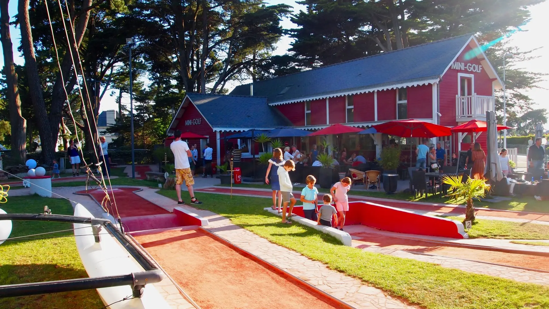 Le Mini-Golf de La Baule dispose de 18 grandes pistes en terre battue, d’une terrasse ombragée et d’un mini-restaurant : l’endroit idéal pour passer des moments inoubliables entre amis, ou en famille, mais également pour organiser de conviviales réceptions privées.