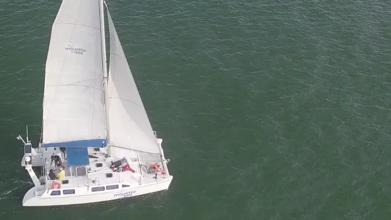 Embarquez à bord d’un catamaran pour une balade en mer en profitant des sensations de la navigation à la voile.