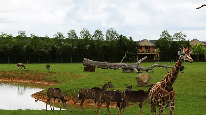Depuis de grandes passerelles en bois, venez découvrir les vastes espaces où évoluent girafes, zèbres, antilopes, lions, ours ou encore la famille de rhinocéros.