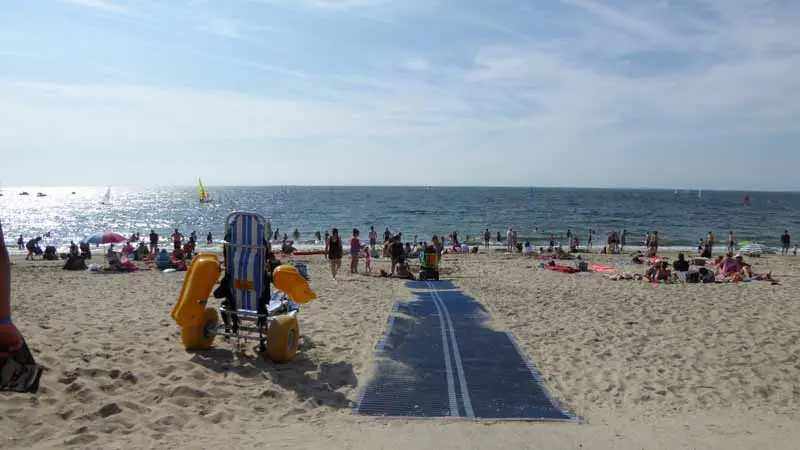 Plusieurs entrées, dont certaines possèdent des escaliers, permettent d'accéder à cette plage. Un tiralo est disponible au poste de la SNSM (en juillet et août) pour permettre aux personnes à mobilité réduite de se baigner.