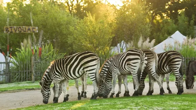Coupez du stress quotidien, découvrez l'ambiance d'un bivouac africain de type Kenyan au milieu des zèbres, gnous et antilopes. Dégustez un dîner typique africain et passez la soirée près du feu de camp.