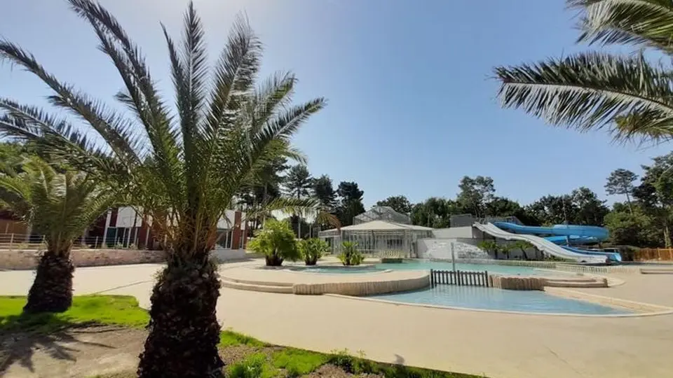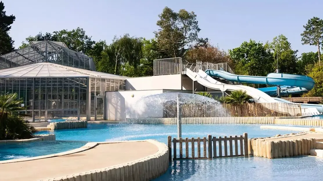 Jolies prestations avec un grand complexe aquatique chauffé, avec 1 bassin couvert, 1 bassin extérieur, des toboggans, jacuzzi, solarium ...